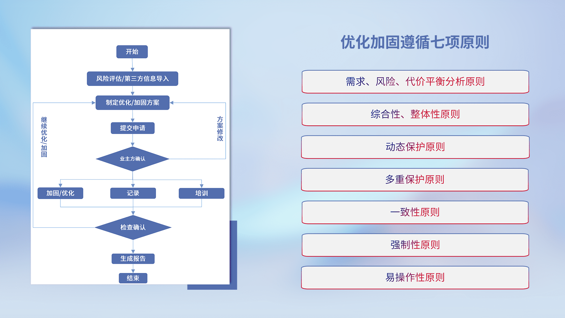 通过专业的法律咨询解读、、合规架构体现、、、差异化解决方案、、测试实施支持等服务,,为客户量身打造等保合规体系。。。