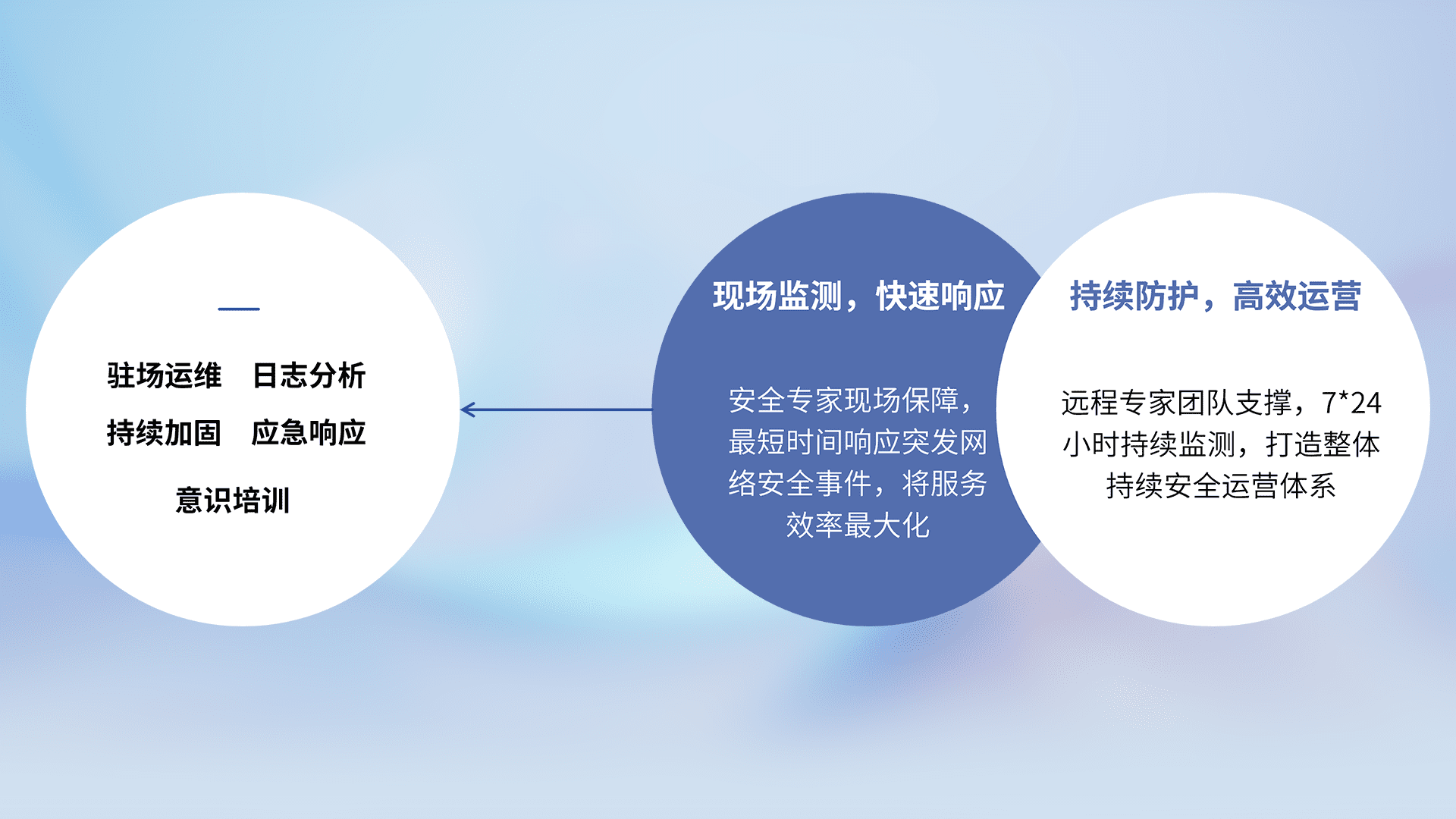 针对客户行业特性,,提供专属的一站式安全管理服务,,,,帮助客户全面感知网络空间威胁,,通过安全专家的线上、、、、线下防护支持,,,实现风险闭环,,,,将安全保障常态化,,,为客户打造常态化安全运维运营服务。。。。